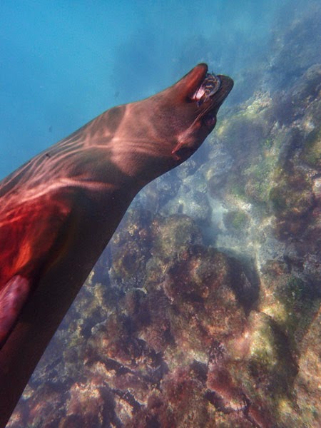 This sea lion swam playfully with several of us that day and sometimes would stop right in front of us and look us in the eyes. It was as if the sea lion expected us to play with him and clap for his antics.